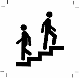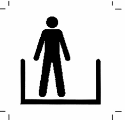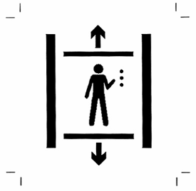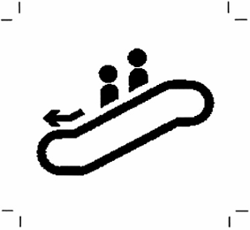 Hình vẽ người từ đằng sau đang đứng bên trái (hoặc phải) của đường tự hành dành cho người đi bộ hoặc thang máy |