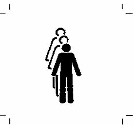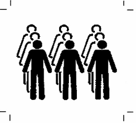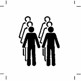 Hai hàng người nhìn chính diện, hai người đứng đầu được tô đậm, các người khác chỉ vẽ đường nét |