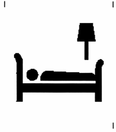 Hình vẽ người đang nằm trên giường với một cái đèn |