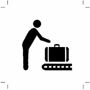 Hình vẽ nhìn nghiêng người đang nhấc hành lý ra từ băng tải |