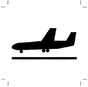 Hình vẽ nhìn nghiêng máy bay đang hạ cánh đáp xuống đường băng |