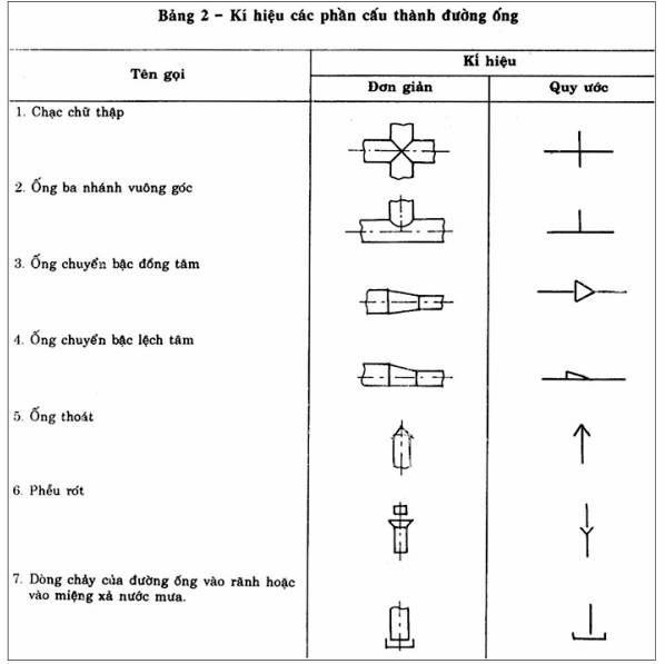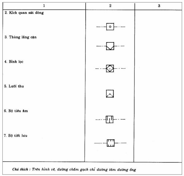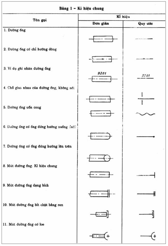 1. Kí hiệu quy ước, của các loại đường ống phải nằm lọt trong kết cấu của chúng (xem phụ lục)