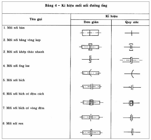4. Những kí hiệu quy ước của đường ống và các phần cấu thành đường ống không nếu trong tiêu chuẩn này, cần được biểu diễn phù hợp với hình dạng cơ bản của sản phẩm (xem phụ lục).