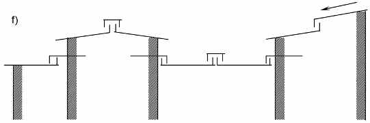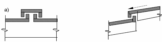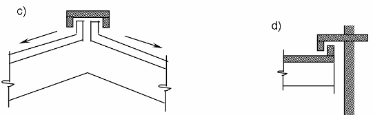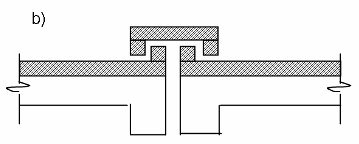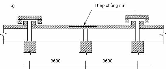 2.1.5. (Bắt buộc áp dụng) vị trí khe co dãn nhiệt ẩm được đặt ngay trên đỉnh tường hoặc trên các dầm đỡ mạng sàn mái. Nếu khoảng cách giữa các tường hoặc dầm ngắn hơn khoảng cách khe co dãn nhiệt ẩm thì tại vị trí dầm và tường cần đặt thêm thép chống nứt cho lớp bê tông chống thấm ở trên (hình 2a).