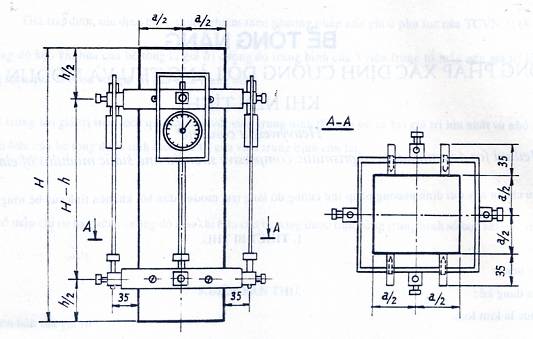 1.2. Biến dạng kế: sử dụng biến dạng kế đòn bẩy hoặc các loại đồng hồ đo biến dạng lắp trên khung gá vào mẫu (hình 1). Các dạng đo biến dạng phải đảm bảo độ chính xác của các số đo biến dạng tương đối với ± 5.10-6.