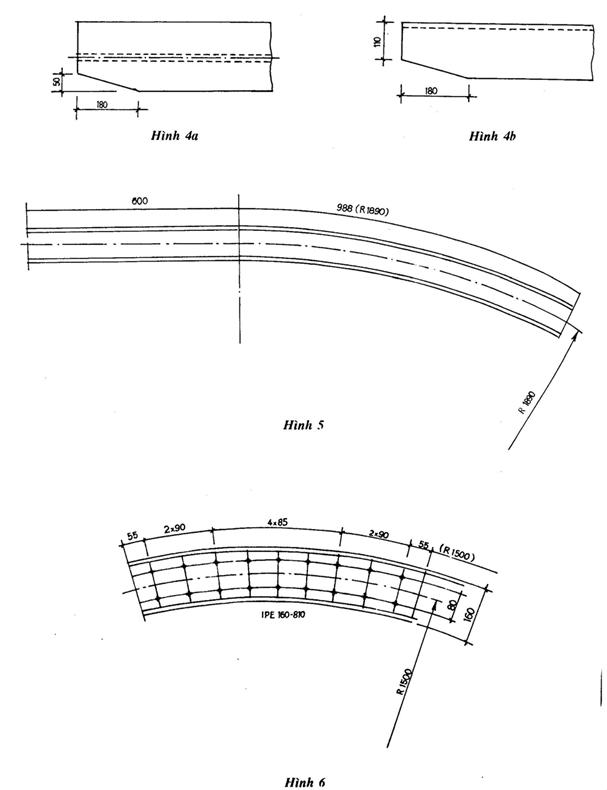 Ghi bán kính cong của một cung (đường mép ngoài, đường trọng tâm…) ở trong ngoặc, bên cạnh chiều dài khai triển của cung tương ứng như chỉ dẫn ở các hình 5 và 6