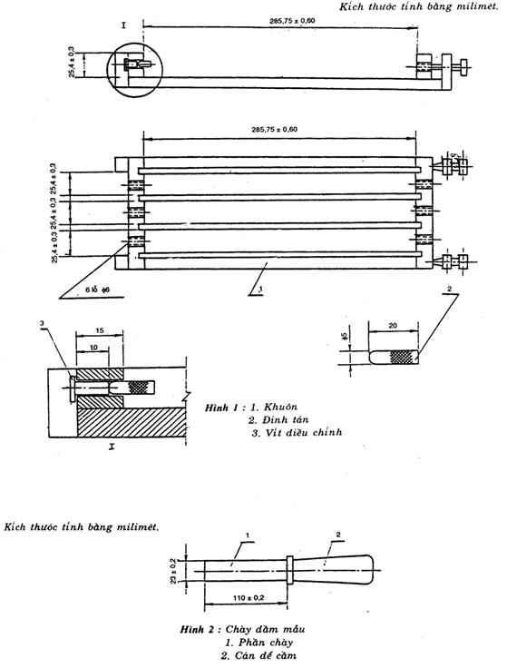 4.1.1. Khuôn 25,40mm x 25,40mm x 285,75mm (hình l) được chế tạo bằng thép hoặc bằng gang có độ cứng cao.