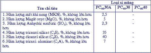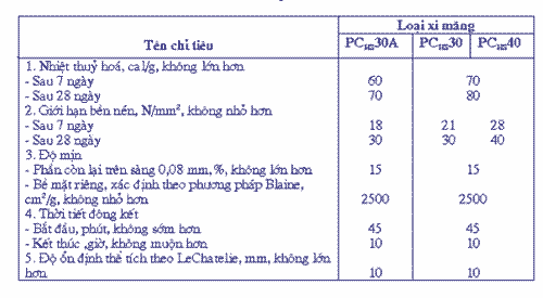 – Kí hiệu chủng loại xi măng theo tiêu chuẩn này: PCLH30A ; PCLH30 hoặc PCLH40