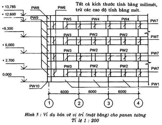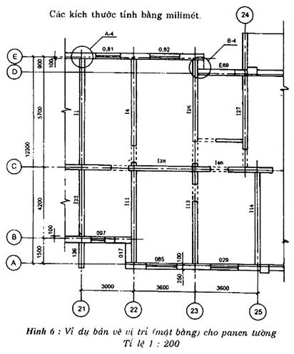 4.2.4. Trong khi phác thảo các bản vẽ định vị cho các kết cấu tường panen chế sẵn cấu kiện phải được thể hiện bằng đường bao nét đậm (xem hình 6).