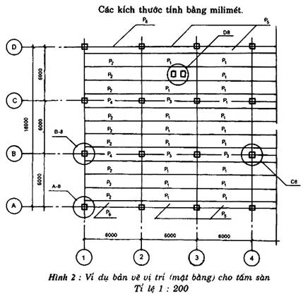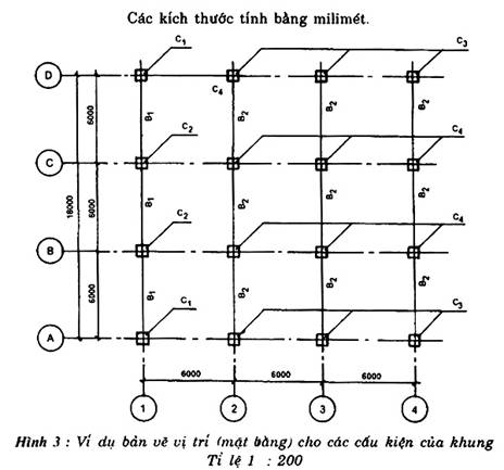 Cấu kiện phải được thể hiện ở các mặt bằng (hoặc) mặt cắt hoặc mặt nhìn, như đã minh họa trên các hình từ 1 đến 6. Các bản vẽ định vị cho các kết cấu không gian 3 chiều phức tạp phải được thực hiện ở các mặt phẳng khác Các tỉ lệ thích hợp cho các bản vẽ định vị là 1 : 50, 1 : 100; và 1 : 200.