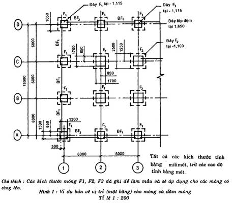 Các bản vẽ vị trí móng và các kết cấu dưới đất khác sẽ được trình bày với giả thiết rằng nền đất là trong suốt.