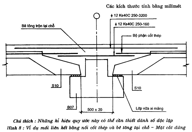 d) Phương pháp nối như hàn, nối bằng bulông hoặc sử dụng các móc cốt thép để nối trên công trường.