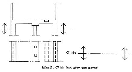Kí hiệu dùng cho phép chiếu trực giao phản chiếu được thể hiện trên hình 2: Hai mũi tên kép vuông góc với nét chấm gạch mảnh.
