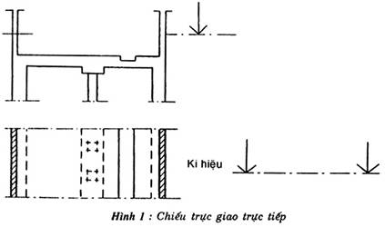 Kí hiệu dùng cho phép chiếu trực giao trực tiếp được thể hiện trên hình 1: Hai mũi tên song song vuông góc với nét chấm gạch mảnh.