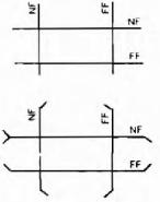 Ở mặt đứng của tường có cốt thép ở cả hai mặt cốt thép thì phải có chữ bổ sung cho các kí hiệu để chỉ vị trí của lớp. Nếu có sử dụng các kí hiệu đầu cuối thanh, chúng sẽ được chếch lên trên hay vẽ phía dưới đối với cốt thép của mặt ở xa và chếch xuống hoặc về phía phải đối với cốt thép của mặt ở gần. (NF : mặt gần; F: mặt xa) |
