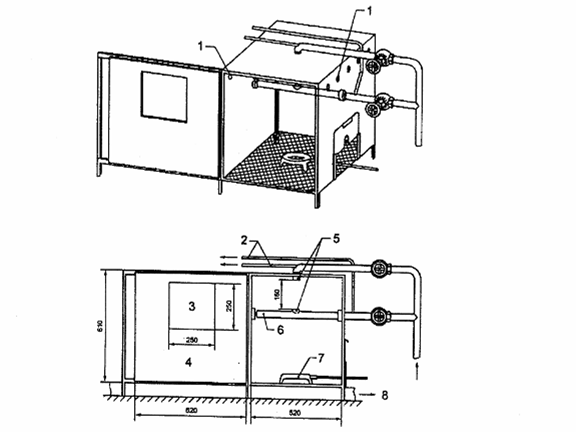 CHÚ THÍCH Trong trường hợp các phần tử phản ứng nhiệt đối xứng, hướng chuẩn là hướng mà luồng không khí vuông góc với cả đường trục của luồng nước và mặt phẳng của tay khung kẹp; Trong trường hợp các phần tử phản ứng nhiệt không đối xứng, hướng chuẩn là hướng mà luồng không khí vuông góc với cả đường trục luồng nước và mặt phẳng của tay khung kẹp, đồng thời phải tạo ra phản ứng ngắn nhất.