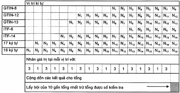 Cách tính số kiểm tra tiêu chuẩn cho các cấu trúc dữ liệu của GS1