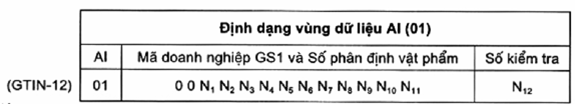 Kết cấu vùng dữ liệu Al (01) của mã số GTIN-12 được nêu trong Hình 2.