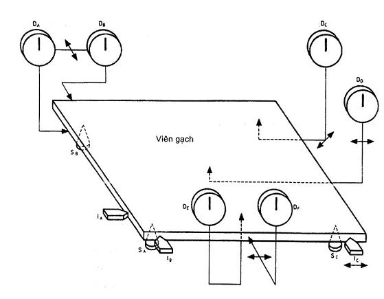 Để đo độ phẳng mặt của gạch trơn, các vấu đỡ (SA, SB, SC) có đường kính bằng 5 mm. Với loại gạch có bề mặt khác có thể dùng các vấu đỡ thích hợp khác.