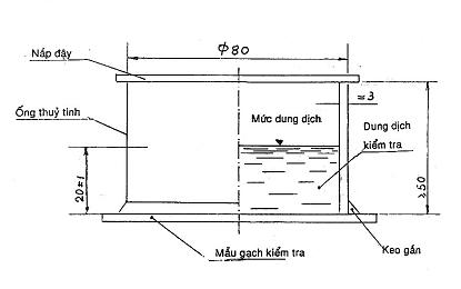 Gắn ống thủy tinh vào bề mặt gạch đã được lau sạch và sấy khô đến khối luợng không đổi. Vết gắn có kích thước khoảng 3 mm.