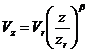 trong đó vận tốc gió Vz tại độ cao z được tính như sau: