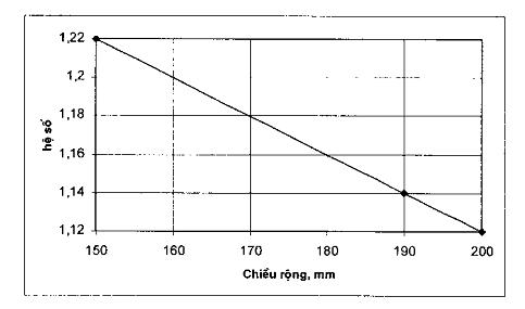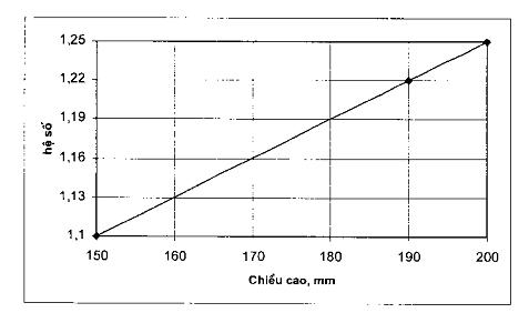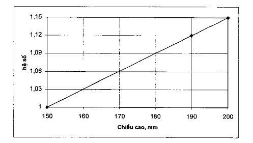 Ở chiều rộng 200 mm: chiều cao 150 mm hệ số 1,00; chiều cao 200 mm hệ số 1,15.