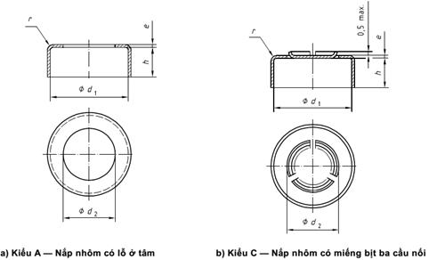 – nắp nhôm có lỗ ở tâm, kiểu A;