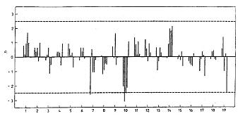 1) C = Kiểm nghiệm Cochran G1 = Kiểm nghiệm Grubb cho 1 quan sát bất thường G2 = Kiểm nghiệm Grubb cho 2 quan sát bất thường |
