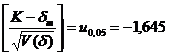 P(││> K │δ = 0) = α = 0,05