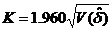 P(││≤ K │δ = 0) = 1 – α = 0,95