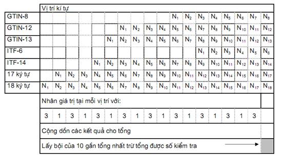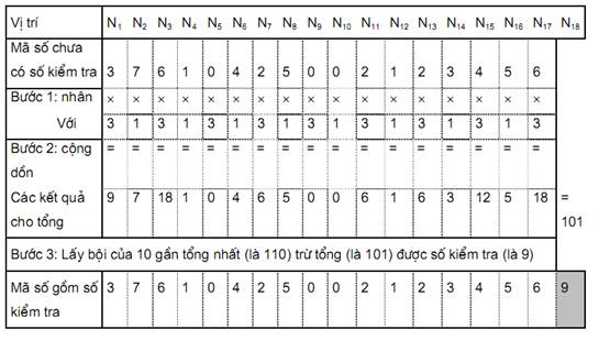 CHÚ THÍCH: Số kiểm tra là chữ số thứ 13 được tính từ mười hai chữ số đứng trước theo thuật toán thống nhất như các bước nêu ở Phụ lục A.