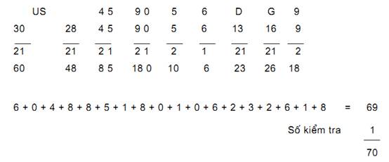 Việc tính số kiểm tra được thực hiện theo các bước sau: