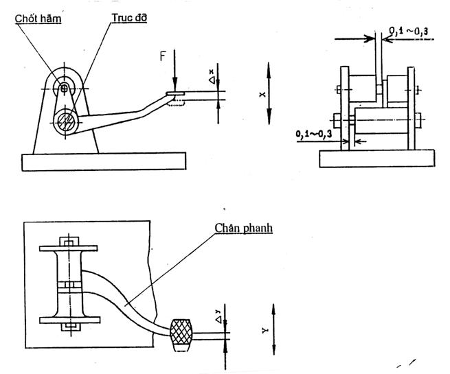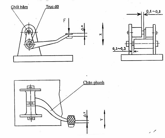 3.4 Khi thử theo 4.4 phanh chân phải có độ chuyển vị không lớn hơn trị số theo bảng 1 và không bị hư hỏng như nứt, rạn, gãy…