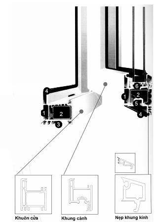 Kết cấu khung làm từ thanh profile có thép gia cường, có kích thước xác định, làm khung vững chắc cho cánh cửa, gắn kết với khuôn cửa bằng hệ thống liên kết cửa (3.7).