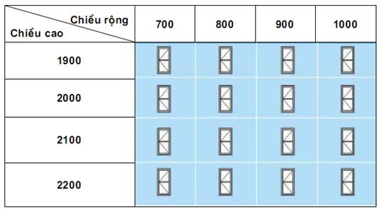 Hình A.6 – Kích thước thông dụng của cửa đi hai cánh mở quay
