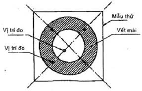 Đo độ truyền sáng của mẫu thử theo TCVN 7219:2002 tại một điểm có ký hiệu “O” trên Hình 2, được giá trị t0l. Tiến hành cho máy quay 100 vòng thì dừng lại.
