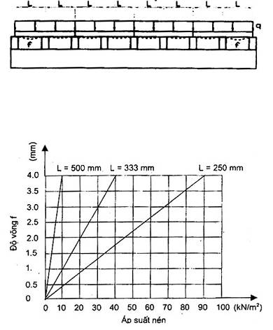 Chất tải từ từ phân bố đều trên toàn bộ diện tích bề mặt tải trọng lớn nhất Pmaxđối với khoảng cách xà đỡ 250 mm là 90 kN/m2, đối với khoảng cách xà đỡ 333 mm là 40 kN/m2 và đối với khoảng cách xà đỡ 500 mm là 10 kN/m2. Việc chất tải phải được tiến hành theo 10 cấp, mỗi cấp tải trọng bằng một phần mười tải trọng Pmax. Sau mỗi lần cấp tải phải giữ nguyên tải trọng trong vòng 30 giây để cốp pha chuyển vị trí ổn định, sau đó tiến hành xác định giá trị độ võng trên đồng hồ đo tại bốn vị trí bất kỳ trong mặt phẳng chia đôi khoảng cách giữa các xà đỡ và lấy giá trị độ võng lớn nhất sau mỗi lần chất tải. Sau khi có giá trị độ võng sau 10 lần chất tải tiến hành vẽ đồ thị tải trọng- độ võng và tiến hành đánh giá theo các yêu cầu của 4.5.