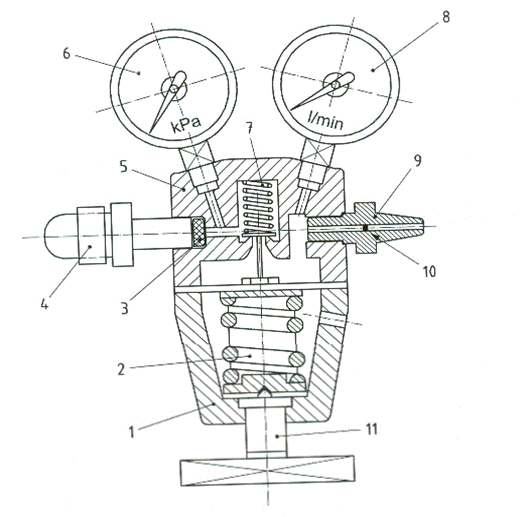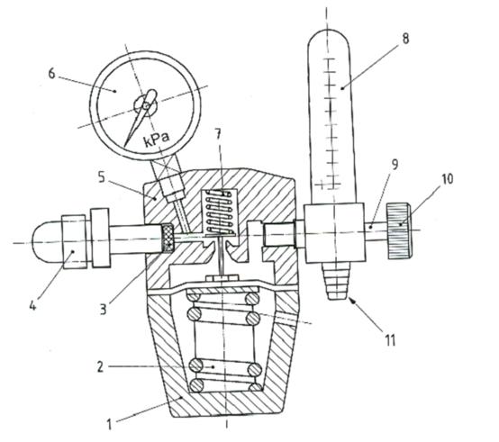 Hình A.3 – Bộ điều áp có thể điều chỉnh được có đồng hồ đo lưu lượng