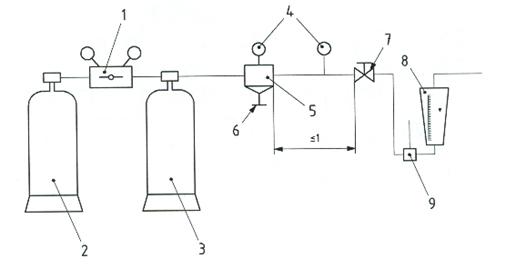 CHÚ THÍCH Đối với khí nén (ví dụ oxy) p1 liên quan đến áp lực nạp chai chứa khí ở 15oC.