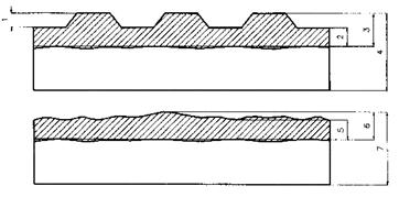 1 – Chiều sâu rãnh; 2 và 5 – Chiều dày nhỏ nhất lớp mặt;