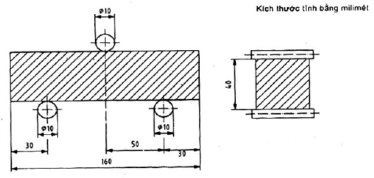 Thiết bị phải được trang bị cơ cấu chịu uốn bao gồm hai gối tựa dạng con lăn bằng thép đường kính (10,0 ± 0,5) mm đặt cách nhau (100,0 ± 0,5) mm và một con lăn truyền tải bằng thép có cùng đường kính, được đặt chính giữa hai con lăn gối tựa. Chiều dài của các con lăn khoảng từ 45 mm đến 50 mm. Hình 3 mô tả cách bố trí việc truyền tải.