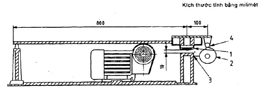 Thiết bị gồm chủ yếu một bàn hình chữ nhật được nối cứng, chắc với trục xoay bằng hai tay đòn nhỏ cách tâm bàn 800 mm.