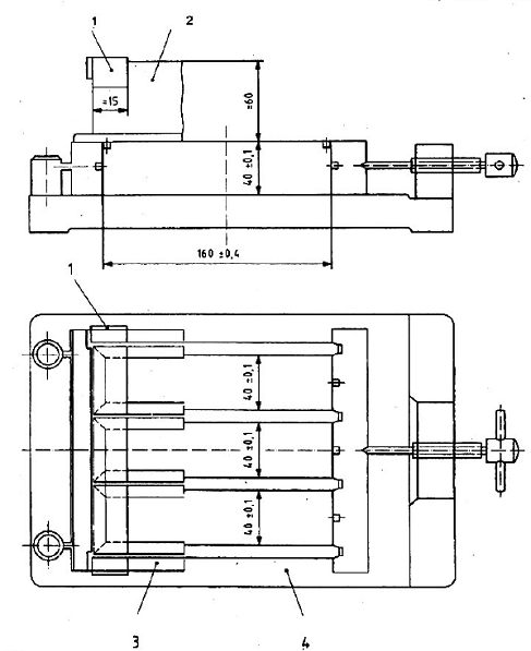 4.1.1.1. Bộ khuôn, sử dụng ba bộ khuôn bằng thép, có bề mặt phía trong nhẵn, để chế tạo các mẫu lăng trụ kích thước (40 ± 0,1) mm x (40 ± 0,1) mm x (160 ± 0,4)mm.