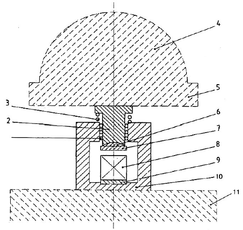 Phép thử cường độ nén yêu cầu phải có bộ gá định vị theo Hình 4, được lắp ở tấm ép dưới của máy; lực được truyền từ máy nén lên tấm ép trên qua gối hình cầu trung gian.