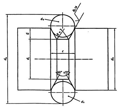 Đường kính trong cùng của rãnh trên gối uốn dùng trong thử kéo lệch phương |