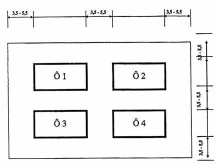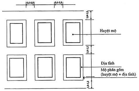 Hình 1 – Khoảng cách giữa các ô chôn cất