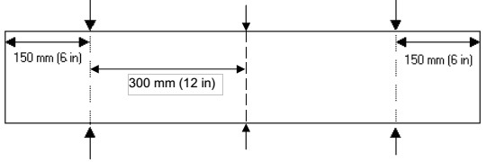 – Các vị trí đo cách nhau 0,3 m, có ít nhất ba vị trí đo trên mỗi thanh mẫu thử, trong đó có hai vị trí cách hai đầu thanh 150 mm (xem Hình 2).