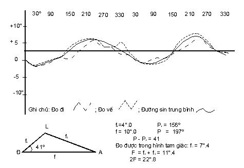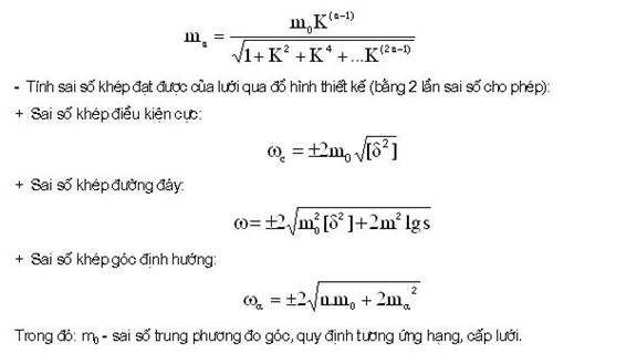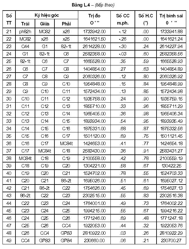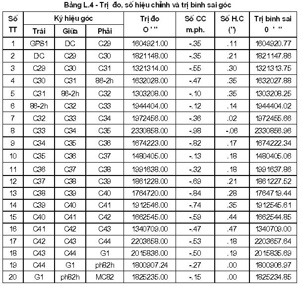 a) Kiểm nghiệm trị đo góc qua lưới tuyến gốc, qua những phương pháp đo toàn vòng với 9 vòng đo. Kết quả sai số trung phương trị đo tính theo công thức: