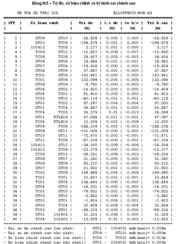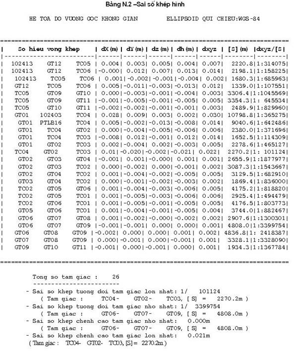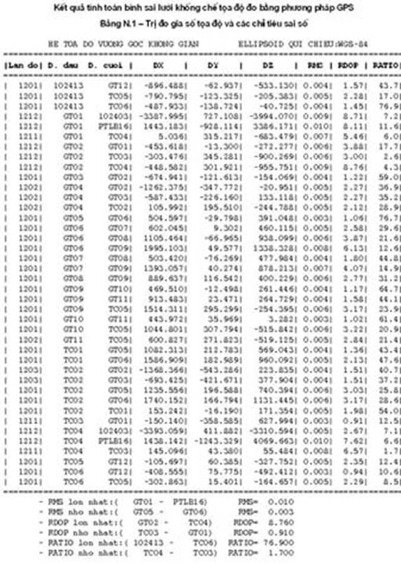 KẾT QUẢ BÌNH SAI LƯỚI GPS THEO PHẦN MỀM GPS SURVEY 2.35