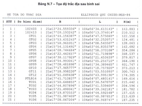 4.1.1 Sử dụng hệ toạ độ VN2000, lấy Ellipsoid WGS 84 làm Ellipsoid thực dụng, bán trục lớn a = 6378,137 Km, bán trục nhỏ b= 6356.752 Km, độ dẹt a = 1/298.257223563.